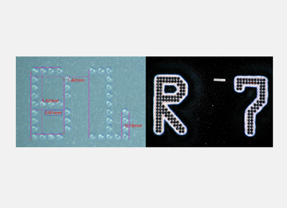 藍(lán)寶石襯底片激光打標(biāo); 多種晶片的硬打標(biāo)和軟打標(biāo)(配備自動(dòng)正片、OCR識(shí)讀模塊)
